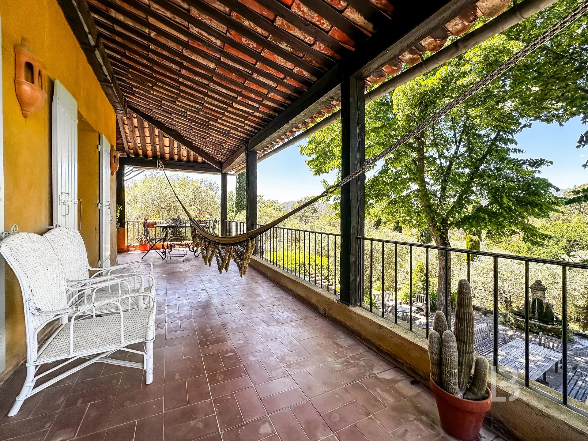 Découvrez cette magnifique bastide d'environ 400 m2 avec une maison d'amis et un jardin d'environ 1,6 hectares dans un environnement paisible et calme. Cette propriété offre le charme incomparable d'une maison de style provençal, avec ses poutres apparentes et ses vastes espaces lumineux. La maison principale se compose au rez-de-chaussée d'un hall d'entrée, d'un grand salon avec cheminée, d'une bibliothèque, d'une salle à manger avec cuisine ouverte, d'une buanderie et de WC invités. À l'étage, vous trouverez la chambre principale avec son dressing, une salle de bain équipée d'une baignoire balnéo d'angle et d'une douche/hammam, habillage bois. Une deuxième chambre avec dressing et salle d'eau, une troisième chambre avec salle de bain et dressing (des sols et des murs en marbre dans les deux salles de bains), des WC et un lave-mains (le sol parquet massif & murs en pâte de verre peinte. Au deuxième étage, un palier, une chambre simple, une autre chambre avec mezzanine, une salle d'eau et des toilettes. La maison d'amis comprend un salon avec plafond cathédrale, une salle à manger avec cuisine ouverte, une belle chambre donnant sur la terrasse, une salle d'eau avec douche à l'italienne et deux puits de lumière circulaire au plafond. Le vaste jardin paysager offre une atmosphère enchanteresse, que ce soit autour de la belle piscine en faïence et sa plage en pierre, ou sous l'ombre de l'oliveraie, des arbres d'agrumes et d'autres espèces méditerranéennes. Une terrasse semi-ouverte longeant toute la maison, deux ateliers, un abri pour 2-3 voitures, une cave, une cave à vin, une chambre froide, un local chaudière, ainsi qu'un local technique pour la piscine complètent cet ensemble. Venez profiter des beaux jours sur la Côte d'Azur en visitant cette propriété exceptionnelle. Les informations sur les risques auxquels ce bien est exposé sont disponibles sur le site Géorisques http://georisques.gouv.fr