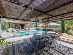 À l'extérieur, le jardin méditerranéen accueille une superbe piscine chauffée à débordement de 15 x 4 m, ainsi que de nombreux espaces de détente. Pool house équipé, cuisine d'été, terrain de pétanque et terrasses ombragées viennent parfaire cet art de vivre en Provence.