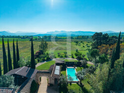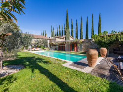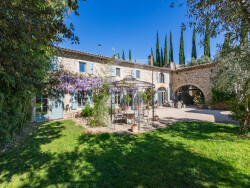Organisée autour d'une superbe cour intérieure agrémentée d'une arche en pierres d'origine, la propriété bénéficie d'un calme absolu et d'une atmosphère paisible. Implantée sur un magnifique terrain arboré de 4 000 m² aux essences méditerranéennes, elle propose un espace intimiste avec une piscine chauffée de 12,5 x 4 m, accompagnée d'une élégante terrasse couverte, idéal pour profiter pleinement des beaux jours. Les prestations, réalisées avec des matériaux nobles et chaleureux, confèrent à l'ensemble un standing élevé et une grande fonctionnalité.