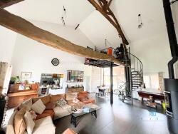 Dès l'entrée, les volumes impressionnent: près de 290 m² habitables baignés de lumière, de superbes hauteurs sous plafond et une atmosphère chaleureuse qui invite à se sentir chez soi. Le séjour cathédral de 60 m², véritable pièce maîtresse, ouvre sur une cuisine conviviale de 30 m², pensée pour rassembler famille et amis autour de beaux moments.