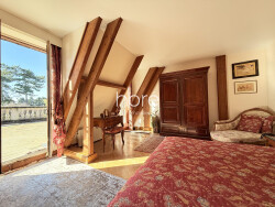 Les étages accueillent plusieurs chambres aux volumes généreux, dont certaines profitent d'une agréable terrasse dominant le parc, offrant une vue dégagée sur la campagne environnante.