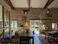 Au coeur d'un magnifique terrain de 4 hectares composé de prairies, de bois et d'un jardin soigneusement aménagé autour de la maison avec arbres fruitiers, arbustes, rosiers et fleurs, cette élégante maison de campagne en pierres apparentes offre un cadre de vie paisible et authentique.