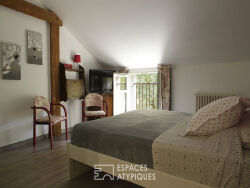 Située au pied de la collégiale de Montreuil-Bellay, cette élégante propriété de caractère d'environ 400 m² se déploie sur une parcelle de 855 m². Organisée autour d'une cour intérieure, d'une terrasse et d'un petit jardin bucolique, elle comprend plusieurs espaces de vie distincts répartis entre la maison principale et des dépendances aménagées en appartements indépendants. La maison principale s'ouvre sur une entrée distribuant une salle à manger et un salon avec cheminée, soulignés par des poutres apparentes, un parquet ancien et des murs en tuffeau. La cuisine déjeunatoire ouverte sur la terrasse donne accès à un atelier/buanderie, WC en rez-de-chaussée. A l'étage, un couloir dessert deux chambres, chacune disposant de sa salle d'eau privative, un WC. Les combles sont partiellement aménagés, offrant un potentiel d'extension ou d'espace complémentaire. Plusieurs espaces indépendants enrichissent la propriété : une chambre avec salle d'eau et WC en rez-de-terrasse ; une pièce de vie et sa chambre d'appoint avec WC et point d'eau en étage ; un appartement comprenant une pièce de vie, une chambre avec salle d'eau et WC, un atelier transformable en seconde chambre ; un dernier appartement indépendant et relié à la maison principale par un escalier intérieur, organisé autour d'une cuisine/salon/salle à manger, de 2 chambres et d'une salle d'eau avec WC. A l'extérieur, le charme opère dès l'entrée dans la cour, protégée par les anciens remparts de la ville. Une terrasse surélevée mène aux espaces de vie principaux. Le regard s'ouvre sur la collégiale et le château de Montreuil-Bellay, conférant au lieu un cadre patrimonial rare. Un garage, une chaufferie équipée d'une chaudière à granulés et plusieurs caves complètent ce bien. Véritable propriété de charme à l'architecture préservée, elle incarne une opportunité unique de vivre ou d'accueillir dans un lieu singulier, à la croisée de l'histoire, de l'authenticité et du confort moderne. Située à 15 minutes de Saumur, cette propriété bénéficie de la proximité immédiate de toutes les commodités de Montreuil-Bellay. CLASSE ÉNERGIE : D / CLASSE CLIMAT : B Montant moyen estimé des dépenses annuelles d'énergie pour un usage standard, établi à partir des prix de l'énergie de l'année 2024 : entre 6810 euros et 9220 euros Contact : Stéphanie 07 88 48 71 60 stephanie.descousis@espaces-atypiques.com Agent commercial immatriculé 438 364 325 au RSAC Niort Les honoraires sont à la charge du vendeur Les informations sur les risques auxquels ce bien est exposé sont disponibles sur le site Géorisques pour les zones concernées : www.georisques.gouv.fr