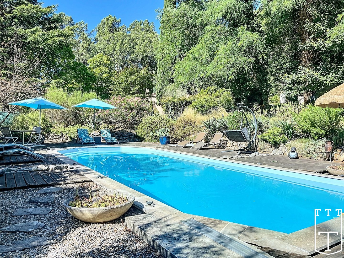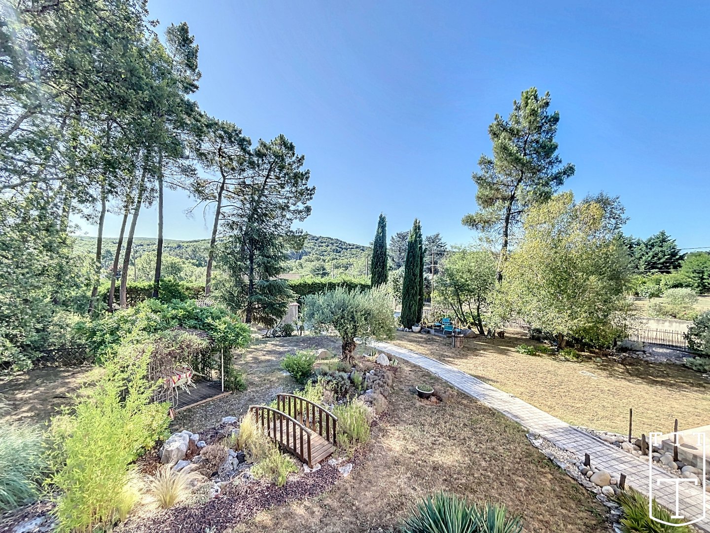 Jardin arboré avec arrosage automatique et droit de puisage