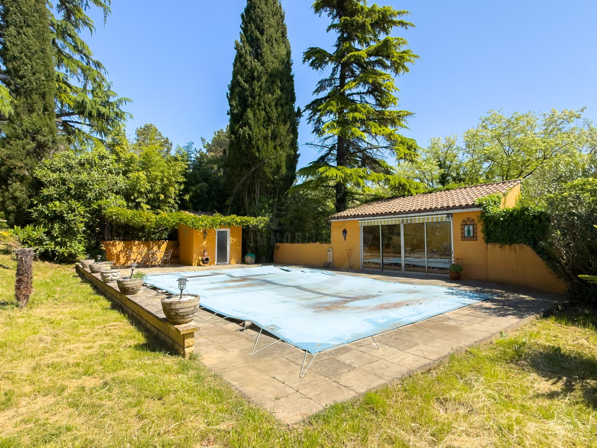 La propriété dispose de nombreuses dépendances : garage, caves, auvent, local technique. Vous profiterez également d'un espace piscine sans vis-à-vis, avec pool-house équipé (bar, douche, WC), d'un bel espace extérieur ombragé, ainsi que d'un terrain de pétanque.