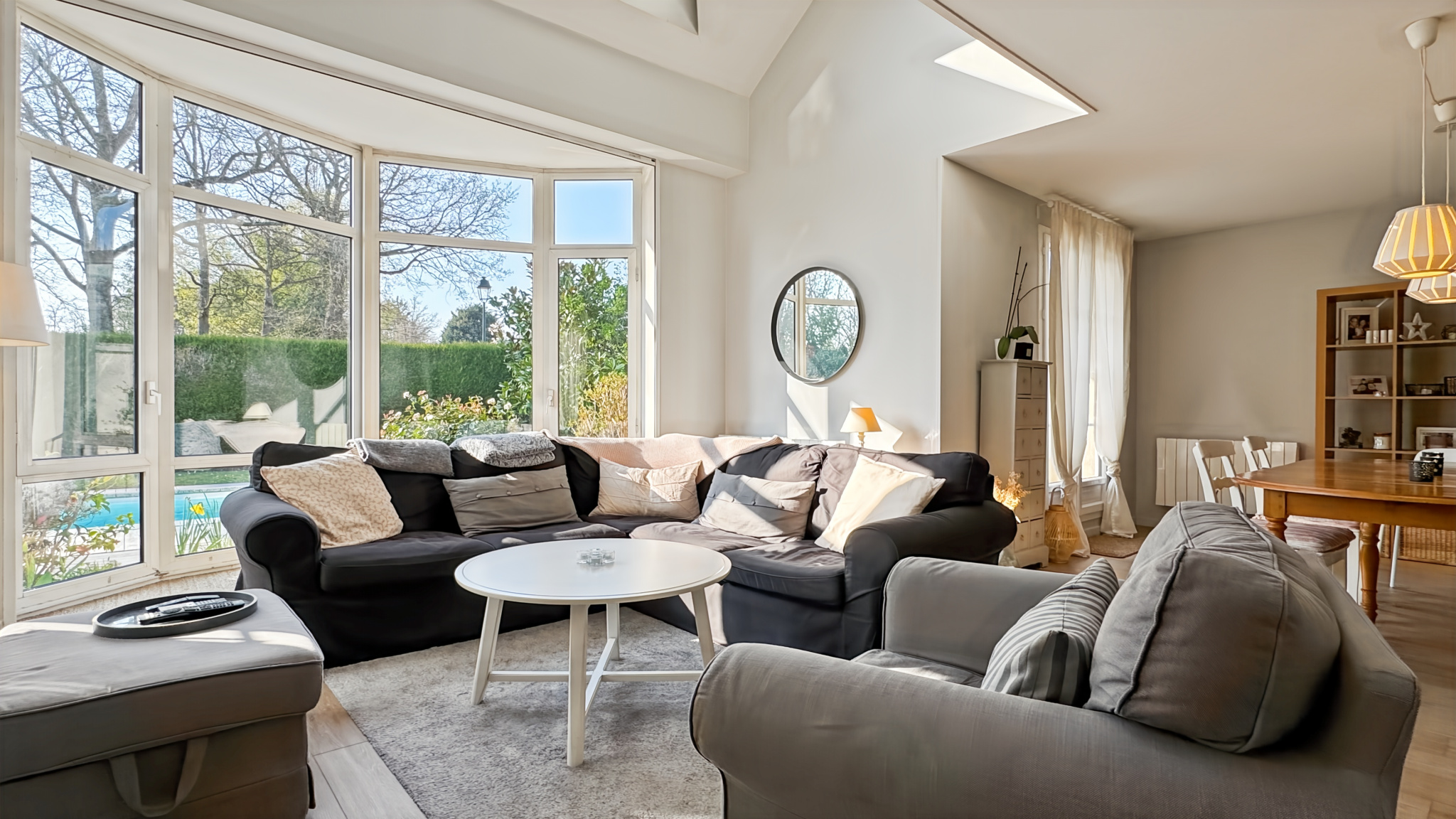 Idéalement située à 3 minutes de Bréval, venez découvrir cette magnifique propriété ancienne de caractère composée d'une maison de 234 m² : Entrée sur salon cathédrale de 66 m² avec cheminée et poêle à granulés, séjour 18 m², cuisine aménagée équipée, quatre chambres dont une avec salle d'eau, salle de bains, wc. A l'étage : mezzanine, chambre avec salle de bains, wc, chambre avec salle d'eau et wc, dernière chambre. Venez profiter de plus d'un hectare de jardin parfaitement entretenu qui offre un cadre de vie calme et paisible ainsi que d'une piscine extérieure chauffée et de son poolhouse (70 m²) parfait pour les beaux jours. La propriété dispose également d'un premier double garage (43 m²) avec grenier aménagé en chambre avec salle d'eau et wc. Un second double garage (45 m²) avec atelier et buanderie Cellier avec une cave. Joli parc clos et arboré de 11 244 m². Points techniques : simple vitrage bois, chauffage gaz propane, tout à l'égout