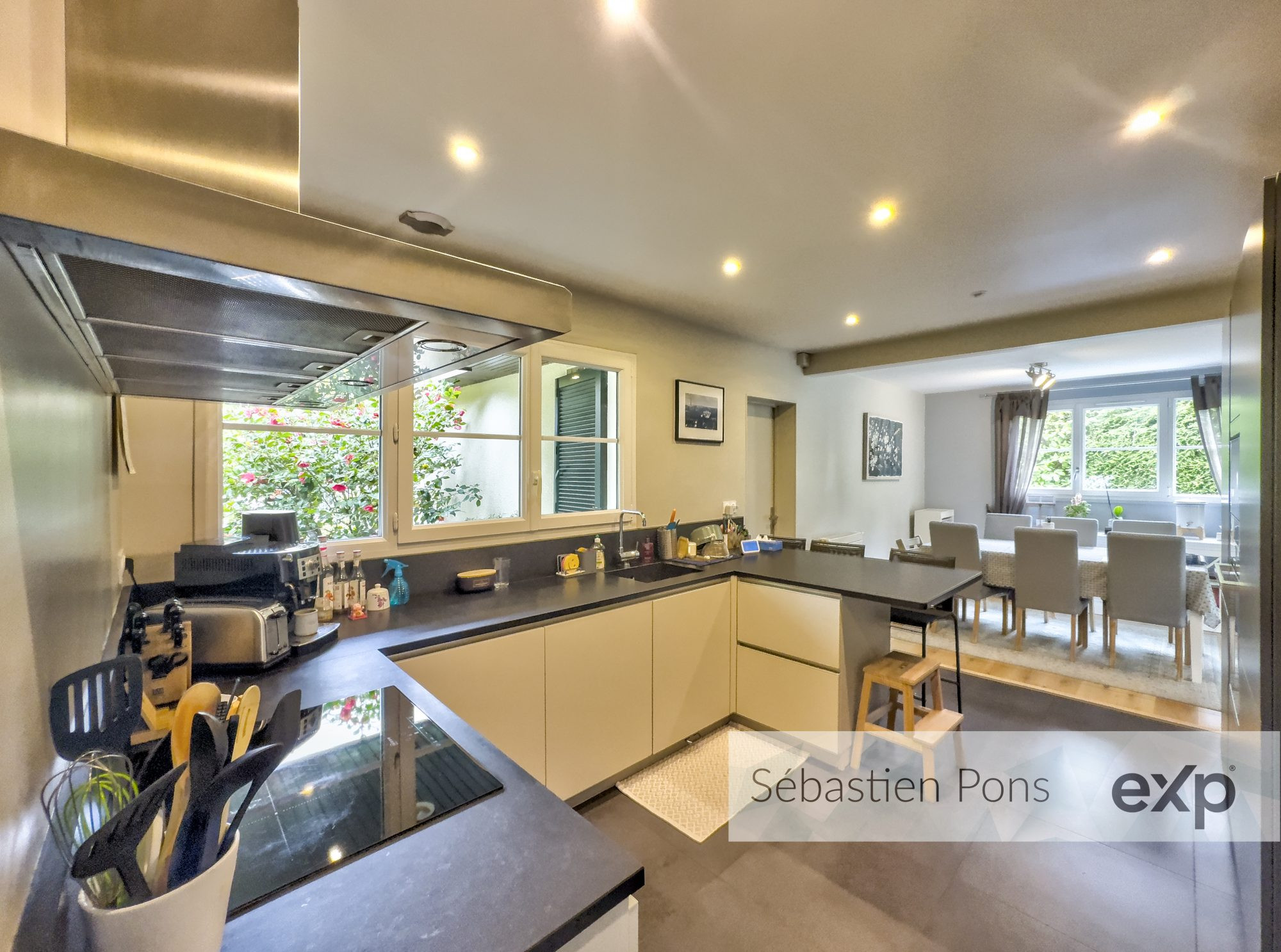 Une entrée avec escalier menant à l'étage Deux chambres Une salle d'eau avec douche, vasque et WC Un WC indépendant Un vaste et lumineux espace de vie chaleureux composé d'un séjour avec poêle à bois, d'une cuisine ouverte et d'une salle à manger -- le genre d'endroit où les soirées s'éternisent naturellement