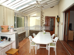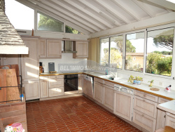 A proximité de la plage et des commerces, secteur résidentiel, calme et verdoyant. Sur 1436 m2 de terrain, cette propriété de plus de 200 m2 comprend de plain pied : entrée, séjour double avec chemin, cuisine indépendante, grande véranda aménagée en grande cuisine et espace repas, 3 chambres (dont 2 avec salle d'eau privative), 3 salles d'eau, 2 WC ; et grand garage en sous-sol. Possibilité piscine. Terrain plat, clos et arboré. - BEL IMMO Cavalaire - Tél. 04.94.00.44.55. - info@bel-immo.com - www.bel-immo.com -