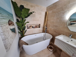 Cette propriété propose un spacieux séjour de 37 m² baigné de lumière et offrant une échappée mer, une cuisine aménagée et équipée, une suite parentale ( au rez-de-chaussée ), ainsi que 2 chambres confortables au 1er étage, une salle d'eau avec douche, un wc, et une mezzanine pouvant accueillir un espace bureau.