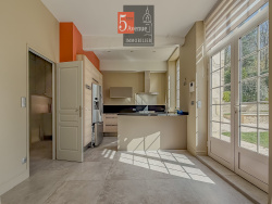 À l'étage, le palier dessert une suite parentale avec sa salle d'eau, deux chambres, une salle d'eau indépendante ainsi qu'un dressing. Un studio avec accès indépendant est également présent, permettant un usage autonome.