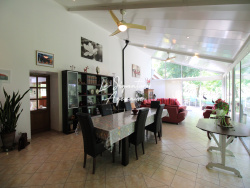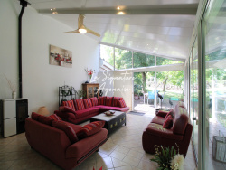 En exclusivite, située sur la commune dynamique de Laplume, à deux pas des commerces, écoles et services accessibles à pied, cette authentique maison en pierre de 220 m2 allie charme, confort et beaux volumes. Elle se compose d'une cuisine équipée avec cheminée, d'un spacieux salon-séjour, de 4 chambres dont une de 20m2, (L'une est aménagée en salle de détente avec baignoire balnéo), d'une véranda lumineuse avec poêle à granulés de 64m2, d'un très grand cellier, d'une salle d'eau, ainsi que d'un double garage en bois avec mezzanine et d'un atelier (idéal pour un espace de sport ou de loisirs). Côté extérieur, vous profiterez d'une belle piscine, d'une terrasse couverte avec barbecue en dur, d'un gîte indépendant (capacité 4 personnes, avec 2 salles d'eau dont une accessible PMR), le tout sur un terrain arboré de 3 620 m2. Les prestations sont de qualité, les lieux sont très bien entretenus, chaleureux et plein de potentiel. Les dépendances sont parfaites pour du stockage ou pour développer une activité professionnelle. Vous apprécierez tout particulièrement les grands volumes, le calme de l'environnement et la proximité immédiate d'Agen, tout en bénéficiant du cadre de vie paisible et trés pratique de Laplume. Une propriété idéale pour une grande famille, un projet de location saisonnière ou une activité indépendante.