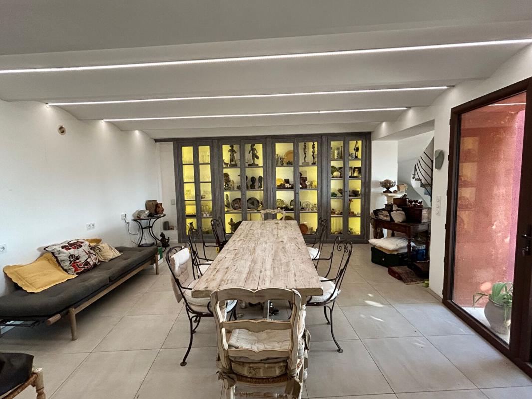 Située à mi-distance des 2 superbes villages de Ménerbes et de Roussillon. Cette chaleureuse propriété en pierres apparentes offre la rareté d'être adaptée intégralement aux Personnes à mobilité réduite. A quelques minutes des commerces du ravissant village de Goult le plus proche, au coeur d'un petit hameau arboré de vignes alentour. Intime, sans être nullement isolée, au calme absolu, cette remarquable bâtisse fait partie d'un authentique Mas ancien à l'origine, agrandi puis remanié dans le temps. La demeure ouvre sur une remarquable pièce de vie avec sa superbe poutraison apparente et une singulière cheminée pour se chauffer confortablement quand vient l'hiver. Ce salon salle à manger ouvre sur une terrasse ombragée où l'on profite agréablement toute l'année pour partager ses repas, petits-déjeuners, se détendre, lire.. La maison compte 4 chambres dont 3 spacieuses et lumineuses, de plus de 25m2, équipées chacune d'une salle d'eau ou de bain. Agrémentée d'un 2nd espace de terrasse en surplomb qui intègre une large piscine idéale pour se rafraîchir et faire ses longueurs. A noter un vaste garage où bricoler, un double annexe aménageable côté piscine, ainsi que des caves en entresol qui complètent ce bel ensemble. L'environnement paisible et magnifiquement arboré d'essences méditerranéennes - oliviers, lavandes, restanque complantée de chênes truffiers.. en font un petit paradis provençal où se ressourcer et partager des moments conviviaux entre famille et amis. Des travaux sont à prévoir pour moderniser l'ensemble. Consulter Mr Julien Cousté au 06 03 81 52 80 pour tout renseignement complémentaire et l'organisation de votre visite. 30min de l'autoroute A7, 45mn de la gare TGV d'Avignon 1h de l'aéroport international Marseille-Provence.