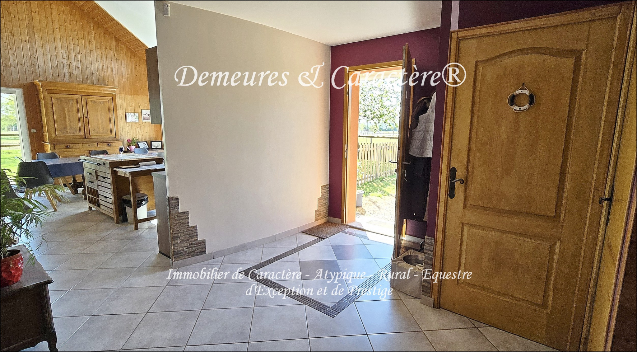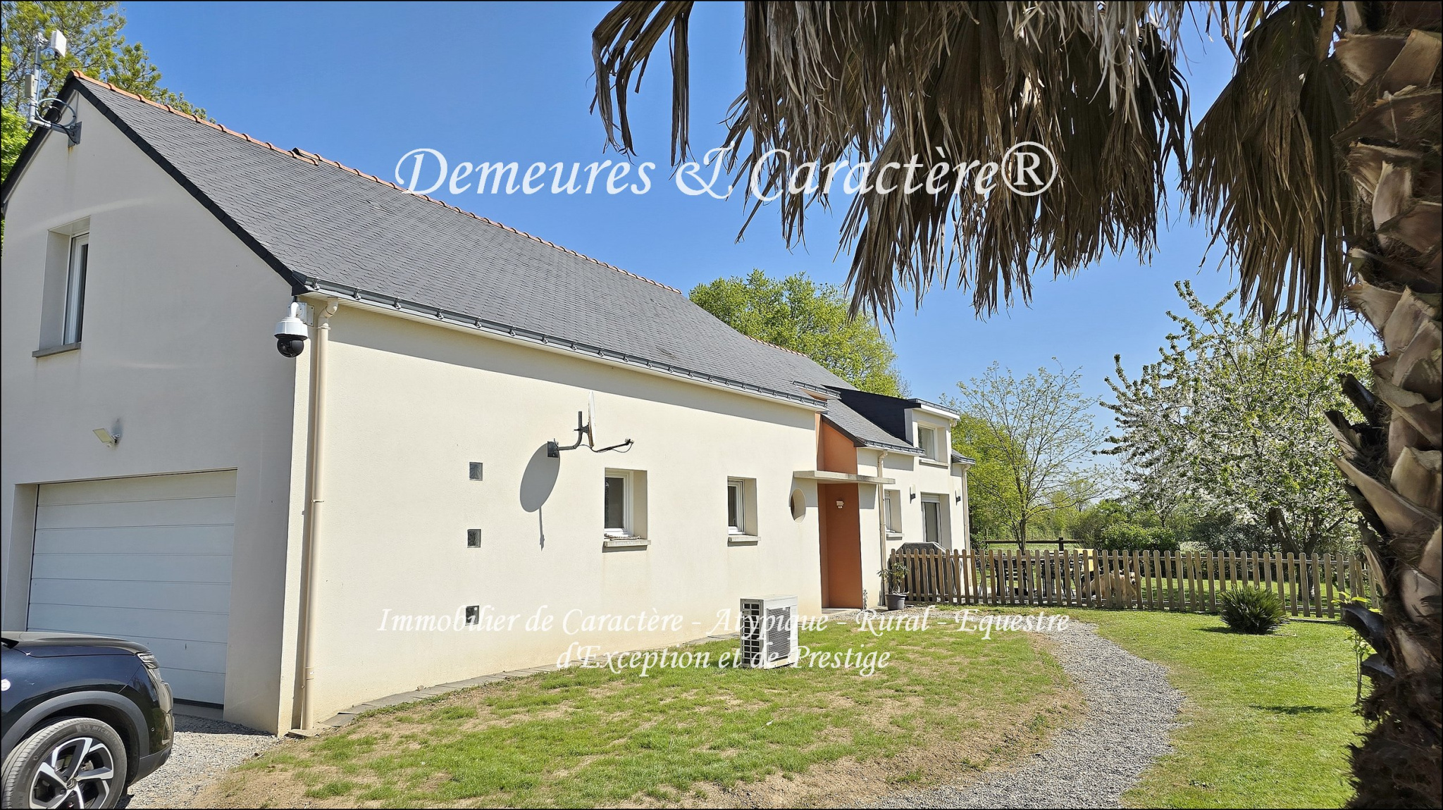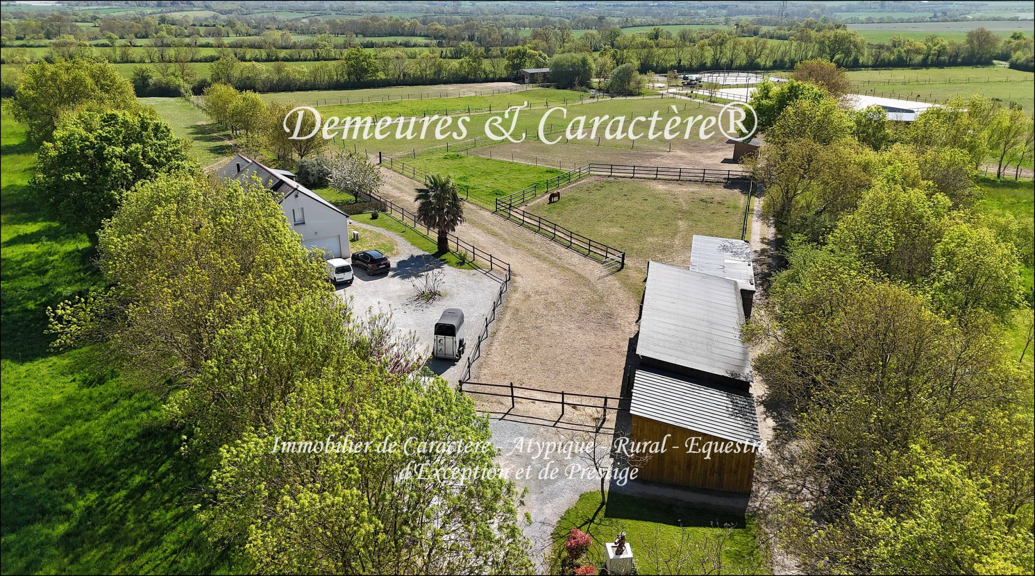 Propriété équestre sur 10 hectares (dont 5 en propriété et 5 en location) comprenant confortable maison de 2010 d'environ 184m2 composée de : Entrée ; Sanitaires ; Lumineuse pièce de vie (sous grande hauteur sous plafond, avec baie à galandage et baie coulissante offrant belles vues sur la propriété et accès aux terrasses) dont récente cuisine aménagée ouverte, espace salle à manger et espace salon avec cheminée à foyer fermé ; Chambres 1 et 2 ; Salle d'eau (2 vasques, baignoire, douche italienne, rangements) ; Buanderie ; Communication intérieure vers garage, puis préau, puis parc à chien (au nord) ; À l'étage : Grande mezzanine à usage de bureau, salle de sport et de détente ; Sanitaires ; Chambres 3 et 4 dont l'une avec grand rangement et douche. La maison en très bon état général est équipée d'un plancher chauffant intégral au RdC, alimenté par pompe à chaleur et radiateurs type radian à l'étage ; huisseries double vitrage (OB en partie) ; volets roulants électriques en principal ; doublage et isolation de qualité (DPE en C) ; 2 VMC ; cuisine équipée et salle de bain récentes ; sol carrelage intégral en RdC et parquet à l'étage ; ANC conforme ; système d'alarme ; garage intérieur communicant ; jardin clôturé autour de la maison avec 2 terrasses ; préau et parc à chien communicants ; fibre haut débit internet raccordée (et réseau 4/5G selon opérateur) ; eau de ville + compteur herbage pour la partie équestre et les extérieurs ; etc etc... Infrastructures équestres, en parfait état d'entretien et idéales pour particulier ou professionnel, composées de divers abris avec abords stabilisés, stabulations, boxes pour chevaux, rond de longe (18m diam.), carrière éclairée 64x35m, paddocks et prairies, allées de circulation ; parkings, mare recueillant les drainages et à usage de réserve d'eau, ... Possibilité de partir en trotting et balade à cheval depuis la propriété. Système professionnel de télésurveillance des infrastructures et leurs abords. La propriété offre deux accès et parkings distincts permettant le respect de l'intimité côté maison en cas d'exploitation professionnelle des équipements équestres. Situation offrant un calme remarquable et apaisant (rare !) ainsi qu'un beau cadre de vie. Petites commodités à 2mn (1 500m) ; Accès à l'autoroute A11 (NANTES - ANGERS - LE MANS - PARIS) à 7mn (5,5km) ; Toutes les commodités d'ANCENIS à 10mn (9km). Ensemble plaisant et très bien entretenu constituant une offre rare. Complément d'informations et rendez-vous de visite sur demande référencée. Ce bien vous est présenté par DEMEURES & CARACTÈRE®, une marque du Cabinet RETZ IMMOBILIER ; Agence spécialiste de l'immobilier de Caractère, Atypique, Rural, Équestre, d'Exception et de Prestige dans les villes, villages, campagnes et sur le littoral de Loire-Atlantique, Morbihan, Vendée et limitrophes. @MNNRICD. Contact : Chris DUBOIS. Mandat exclusif no110912-219055. - Annonce rédigée et publiée par un Agent Mandataire -