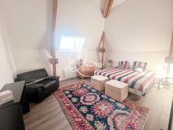 À l'étage, une mezzanine mène à trois chambres sous comble, offrant de beaux volumes. Une seconde salle de bain, fonctionnelle, vient compléter cet espace de vie.