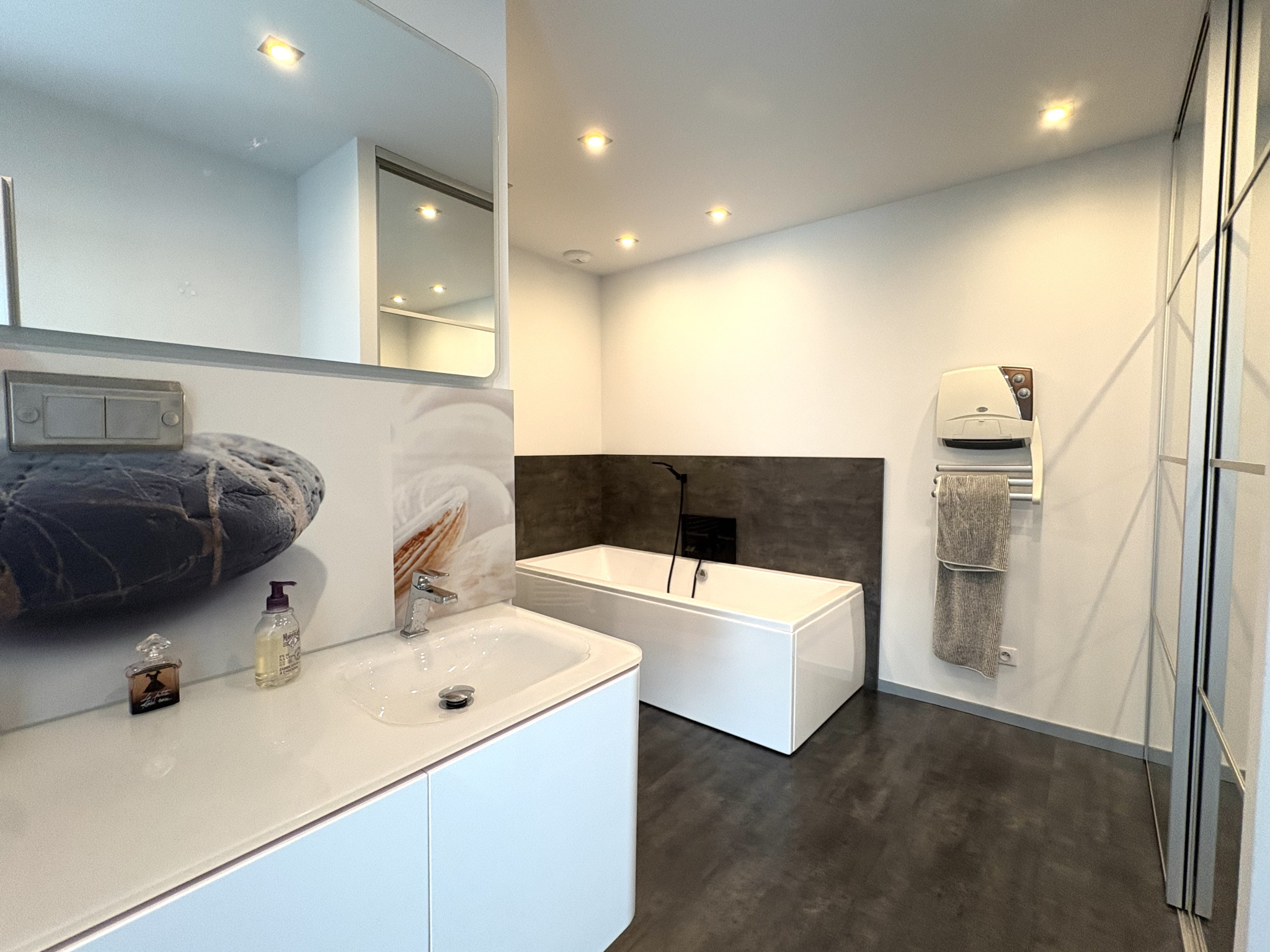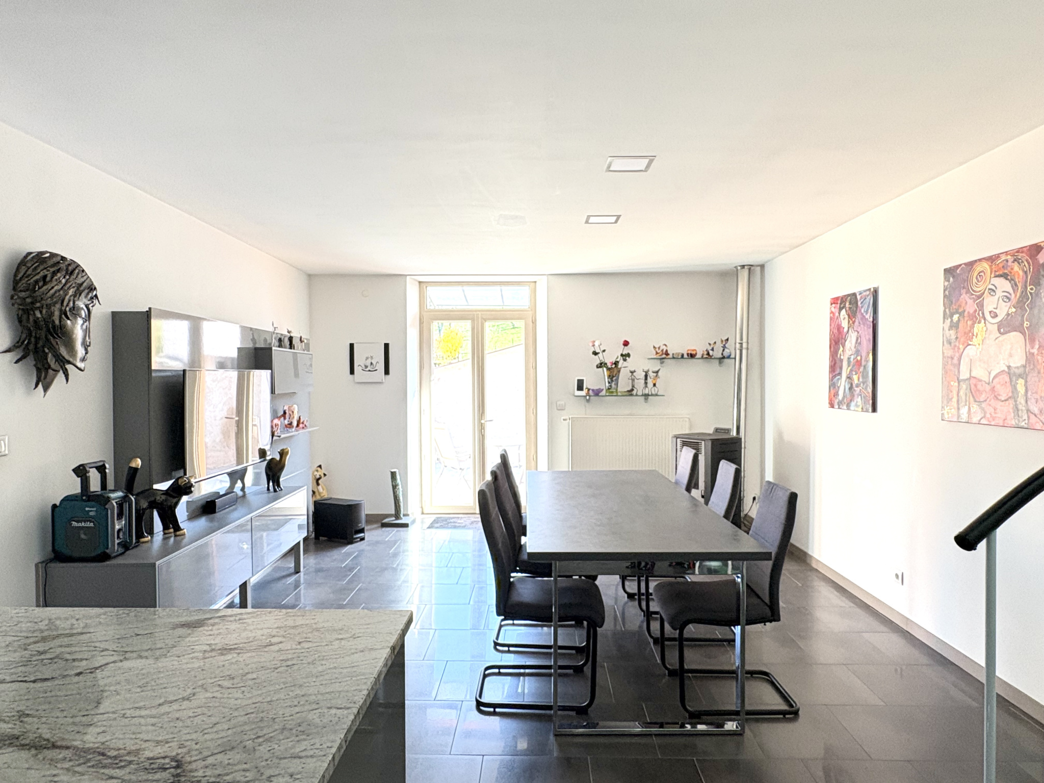 Sur deux niveaux, totalisant 445 m² habitables pour 552 m² de surface totale ; vous retrouverez :