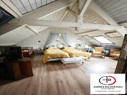 Plongez dans un cadre enchanteur avec cette longère située sur un domaine verdoyant de 2.66 hectares, magnifiquement entourée par une forêt dense. Idéale pour les amoureux de la nature, cette propriété unique dispose d'un vaste étang d'environ 5000 m² et d'une piscine chauffée, offrant un havre de paix et de tranquillité. Un séjour cathédrale de 100 m² orné de poutres apparentes et d'une majestueuse cheminée polyflam, une cuisine américaine aménagée idéale pour préparer des repas tout en restant connecté avec vos invités, une suite parentale luxueuse, conçue pour le confort et la relaxation, avec des finitions haut de gamme, 3 chambres supplémentaires, offrant des espaces privés pour chaque membre de la famille ou pour accueillir en chambres d'hôtes, un bureau confortable. Cette propriété exceptionnelle représente une opportunité rare de posséder un véritable refuge de luxe dans un cadre naturel spectaculaire. Pour plus de renseignements ou pour organiser une visite, contactez dès maintenant l'Agence du Château.