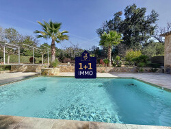 Votre agence 1+1 IMMO vous propose à PUGET-SUR-ARGENS (limite Roquebrune-Sur-Argens, secteur Bouverie), idéalement situé à 5 minutes de tous les commerces et de la sortie d'autoroute, une manifique propriété composée de plusieurs maisons sur 5249m2 de terrain plat complanté d'arbres fruitiers et oliviers, comprenant: