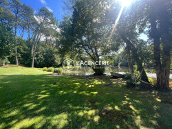Propriété d'exception avec vue panoramique sur son lac privé. Nichée au coeur d'un environnement calme et verdoyant, cette propriété d'exception de 420 m² s'étend sur une parcelle de plus de 6,4 hectares. Véritable havre de paix, elle offre une vue imprenable sur un superbe lac appartenant à la propriété, conférant au lieu une atmosphère unique et sereine. La demeure, pleine de charme et de caractère, se distingue par ses volumes généreux et sa lumière naturelle omniprésente.Au rez-de-chaussée, différentes pièces de réception s'ouvrent sur le parc et le lac, créant une continuité harmonieuse entre intérieur et extérieur. Un vaste salon et une grande salle à manger permet d'accueillir famille et amis dans une ambiance raffinée.Une cuisine séparée, fonctionnelle et conviviale, s'accompagne d'un espace buanderie attenant. Une chambre de plain-pied avec sa salle d'eau privative complète ce niveau, idéale pour recevoir. À l'étage, la suite parentale offre un panorama à couper le souffle sur le lac. Elle dispose d'une spacieuse salle de bains, d'un grand dressing et d'un bureau.2 autres chambres, un bureau et une salle de bains complètent ce niveau. Cette maison propose également deux autres chambres avec accès indépendant et un grand garage. Les extérieurs ne sont pas en reste : le parc paysager, les espaces boisés et le lac privé forment un cadre d'exception, propice à la détente, à la contemplation et aux activités de plein air. Un bien rare, alliant prestige, nature et sérénité, à découvrir sans tarder.