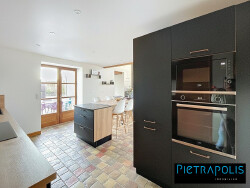 L'intérieur se décompose de la manière suivante : - Au rez-de-chaussée, un hall d'entrée, une vaste pièce de vie de plus de 80 m², traversante et lumineuse, avec plafond cathédrale ouvrant sur la terrasse, une cuisine récente entièrement équipée avec cellier, une suite parentale avec dressing et salle de bains, un bureau (ou chambre) et un garage d'environ 28 m² avec espace buanderie. - À l'étage, cinq chambres, deux salles d'eau et une salle de jeux complètent l'ensemble.