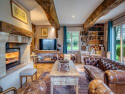 BEUZEVILLE - A proximité d'un charmant village normand tous commerces, et à 15min du centre de Pont l'Évêque, dans un environnement calme & verdoyant, ravissante propriété normande édifiée sur plus de 3ha clos. La demeure principale en colombages d'environ 200m² se compose d'une entrée, une spacieuse & chaleureuse pièce à vivre avec insert bois, une salle à manger avec entre colombages ouverts sur l'extérieur, une cuisine ouverte aménagée et équipée, deux chambres au rdc dont une avec salle d'eau attenante, une salle de bains, une buanderie ainsi qu'un wc séparé. A l'étage, une pièce palière pouvant faire office de bureau dessert 2 autres grandes chambres dont une avec dressing, ainsi qu'une salle d'eau et un wc séparé. La dépendance en colombages également se compose au rez-de-chaussée d'un espace bien-être avec jacuzzi, d'un atelier + stockage et d'une cave. À l'étage, un logement indépendant comprenant entrée, charmante pièce à vivre avec kitchenette, une chambre, une salle d'eau et un wc. Ce bel ensemble normand alliant charme normand et confort séduira celles et ceux qui recherchent un cadre paisible et à proximité immédiate des commodités, à quelques min de Pont l'Évêque. Nombreuses possibilités. A visiter sans plus tarder !