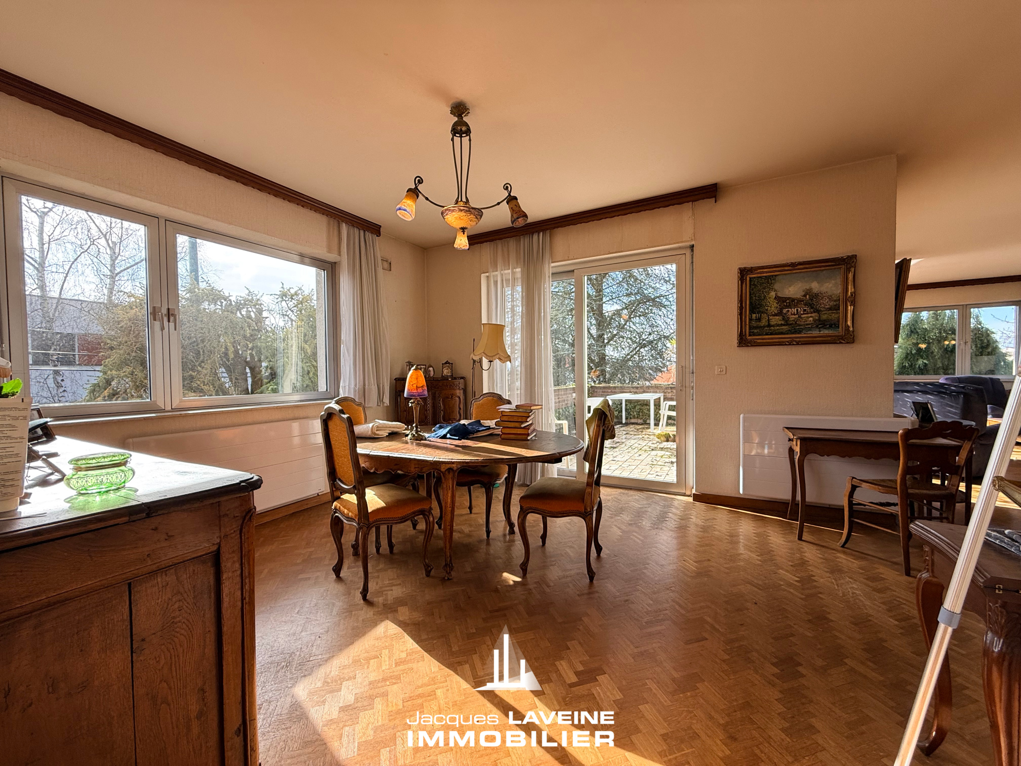 Terrain en fin d'impasse, au calme absolu Grande pièce de vie lumineuse avec séjour et cuisine ouverte Accès direct à la véranda, la terrasse panoramique et la piscine chauffée Store motorisé et vue dégagée sur le jardin 3 chambres spacieuses et lumineuses + 1 bureau Salle de bain et arrière-cuisine fonctionnelle Sous-sol complet et aménagé : chaufferie, buanderie, atelier, salle de réception avec cuisine d'été, salon privé Grand garage offrant plusieurs places de stationnement Environnement verdoyant, proche des axes et commodités