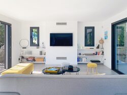 Superbe espace de vie lumineux, ouvert sur deux terrasses Piscine parfaitement intégrée dans l'architecture extérieure 5 chambres dont 3 suites avec salles d'eau privatives 2 chambres supplémentaires partageant une salle d'eau Volumes généreux et prestations de qualité