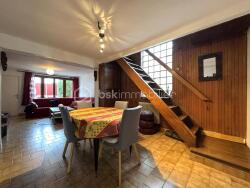 Rue de Romainville - Place Carnot - Ligne 11. Toit comme vous présente une maison de 155 m2 de surface totale et 93 m2 de surface habitable avec grand jardin (parcelle de 548 m2) et deux terrasses, à 500m2 à pied de la station de métro Romainville-Carnot ligne 11 qui est à 18 minutes du centre de Paris métro Châtelet. Le bien est composé de trois niveaux : En rez-de-chaussée, un garage de 21 m2 (hors surface habitable annoncée) et une ancienne cave aménagée en atelier de 17 m2 (hors surface habitable annoncée). En premier étage, trois chambres, dont une chambre parentale avec salle d'eau et coin salon de musique donnant sur une première terrasse s'ouvrant sur un jardin d'environ 500 m2. En deuxième étage une spacieuse pièce à vivre de 45 m2 avec une belle hauteur sous plafond et une cuisine ouverte donnant également sur une magnifique terrasse en bois de 27 m2 (hors surface habitable annoncée), orientée Sud-est avec vue sur jardin, en accès direct par porte coulissante. Un jardin arboré et verdoyant de 500 m2 avec son abri de jardin en bois et son espace barbecue suscitent un dépaysement total aux portes de Paris, unique et rare .Le jardin donne ensuite sur un bois. La maison a été refaite avec goût et de beaux matériaux, parquet en chêne massif, double vitrage, isolation, béton cellulaire, chauffage au gaz, belle hauteur sous plafond, électricité aux normes en vigueur. Calme et lumineux, atmosphère bucolique à deux pas du métro. La maison a également été ravalée, façade et pignons. DPE : D Elle se situe dans le quartier de la place Carnot Montant estimé des dépenses annuelles d'énergie pour un usage standard : entre 1300 euros et 1 790 euros par an. Prix moyens des énergies indexés sur l'année 2024 (abonnement compris). Honoraires charge vendeur.