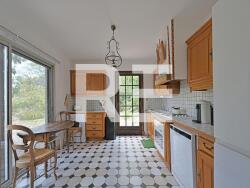 Elle se compose au RDC d'une belle entrée avec point d'eau et WC, d'un grand salon-séjour de 54 m2 avec cheminée, d'une cuisine séparée et d'un bureau.