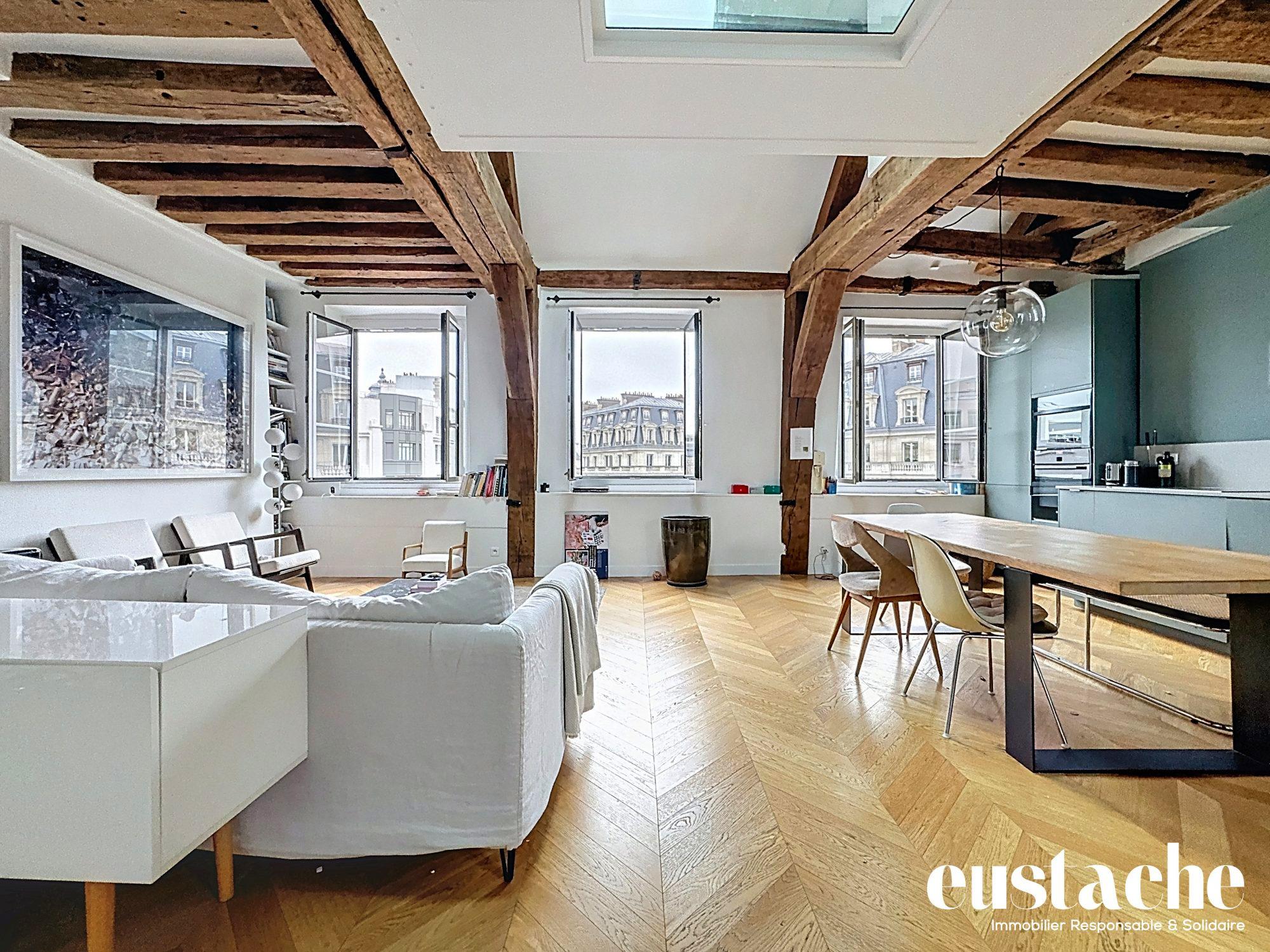 C'est bien simple : le Marais est l'un des quartiers les plus emblématiques et vivants du coeur de Paris, un véritable concentré d'histoire, de culture et d'art de vivre. Ici, tout se fait à pied, entre musées, galeries, restaurants et commerces de renom. Situé rue Saint-Martin, à seulement 50 mètres du Centre Georges Pompidou, l'appartement bénéficie d'un emplacement exceptionnel, au niveau de la rue Rambuteau, là où l'effervescence des Halles laisse place au charme des rues plus étroites et séculaires du Haut-Marais. Parfaitement desservi, le quartier est entouré de nombreuses stations de métro : Rambuteau, Étienne Marcel, Arts et Métiers à quelques minutes à pied, offrant une accessibilité idéale dans tout Paris. L'appartement se situe au premier étage d'un élégant immeuble en pierre, témoin silencieux de l'histoire du quartier. Un étage qui révèle un atout extrêmement rare dans ce secteur : un véritable espace extérieur de 21 m2. Pensé comme une petite maison en plein Paris, le bien développe une surface intérieure de 116 m2, entièrement isolée tant sur le plan énergétique qu'acoustique. Le silence y est total : aucun bruit de rue, ni à l'intérieur, ni dans le patio, pourtant en plein coeur de la capitale. Le vaste patio privatif arboré, parfaitement protégé des nuisances sonores, constitue une véritable pièce de vie supplémentaire. Un luxe absolu dans le Marais, idéal pour que des enfants puissent jouer en toute sécurité, pour partager des repas en extérieur ou profiter de soirées d'été autour d'un barbecue, dans une atmosphère intime et préservée. L'intérieur a été pensé pour offrir un confort optimal et une grande modularité. Le séjour, chaleureux et élégant, peut être entièrement fermé, permettant d'isoler les autres espaces lors d'un dîner ou d'une réception. La cuisine ouverte, haut de gamme, est entièrement équipée avec de l'électroménager premium inclus : réfrigérateur américain, grand congélateur, plancha intégrée, hotte et plaques encastrées, lave-vaisselle, machine à laver... Les meubles peuvent également être inclus, offrant une solution clé en main. L'espace nuit se compose de trois chambres :
