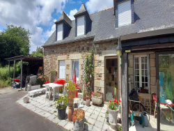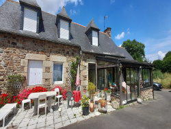 QUESSOY, Proche Zone de l'Espérance, dans un cadre de verdure, longère avec travaux sur 2 hectars de terrain comprenant: séjour-salon avec chemine et cuisine en labo, véranda, une chambre et salle d'eau, w.c. placards. A l'étage: trois chambres et w.c, grenier. Garage attenant avec chauffage au fuel, terrasse exposée sud