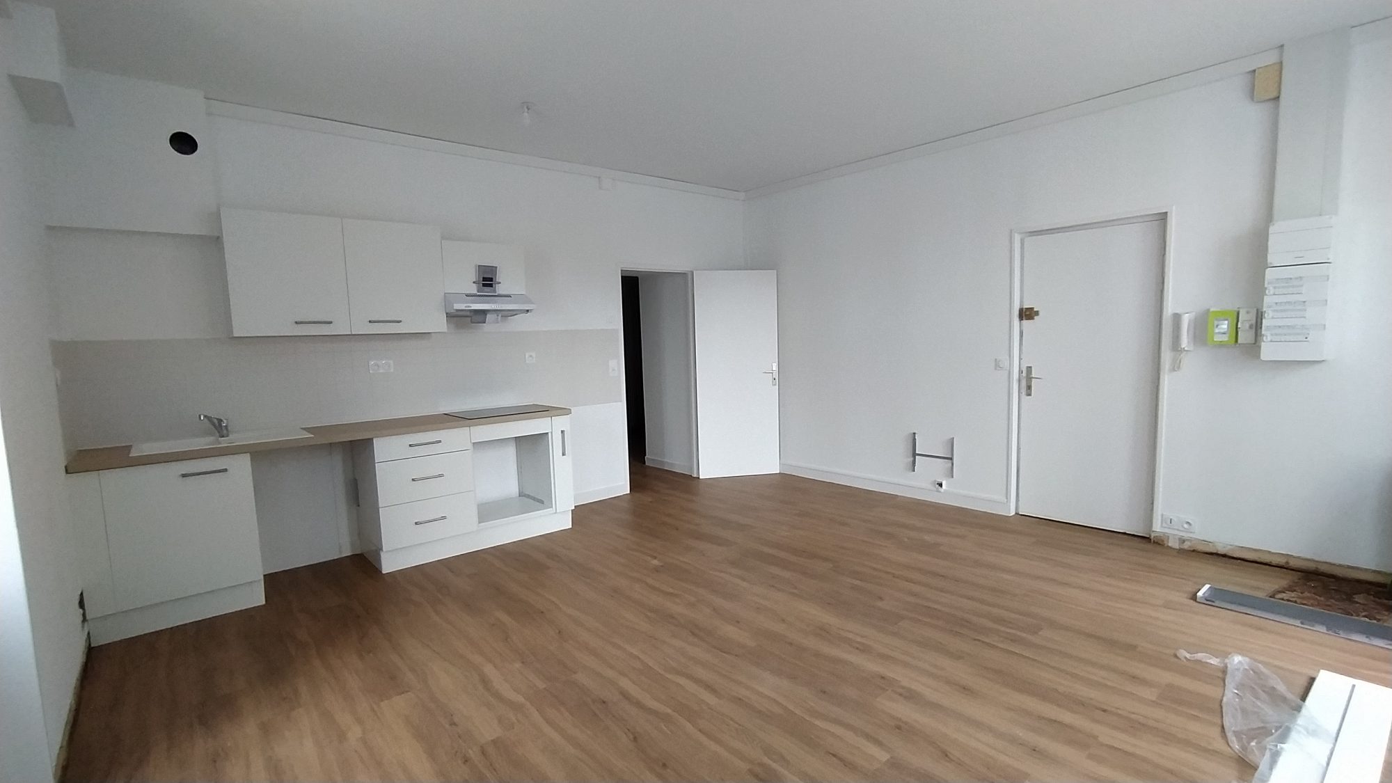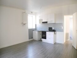 Quimperlé, centre ville, à 2 pas de la place Saint Michel Appartement 3 pièces, 1er étage offrant: une pièce de vie avec cuisine aménagée, deux chambres, salle de bains et WC Place de stationnement en cour privée