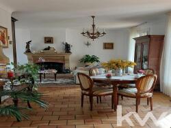 Érigée sur un terrain de 704 m² magnifiquement aménagé, cette propriété de plain-pied se distingue par ses grands volumes et ses équipements de qualité. L'intérieur se compose d'un hall d'entrée menant à une vaste pièce à vivre lumineuse avec cheminée, regroupant salon et salle à manger, ainsi qu'une cuisine séparée et fonctionnelle avec accès balcon.