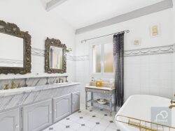 Avec une superficie de 330 m² au sol (204 m² Loi Carrez), cette villa offre un cadre de vie d'exception. Le séjour, baigné de lumière naturelle, s'ouvre sur une vaste terrasse de 70 m² avec piscine, idéale pour savourer chaque instant face à l'horizon. Chaque soir, le spectacle du soleil couchant sublime le panorama, transformant la mer en un tableau vivant. L'espace principal, situé à l'étage supérieur, se compose d'un vaste séjour avec cheminée en pierre, d'une grande cuisine indépendante avec cellier, le tout donnant sur une terrasse arrière. Trois chambres, une salle de bains, une salle d'eau et un WC indépendant complètent ce niveau, en connexion directe avec la terrasse et la piscine, toutes deux orientées vers la mer. En rez-de-jardin, un appartement indépendant vient compléter la propriété. Il comprend un séjour, une cuisine, deux chambres, une salle d'eau ainsi qu'une terrasse d'environ 15 m² avec vue mer et jardin. Cet espace, disposant de son propre accès, offre de multiples possibilités (accueil famille, location saisonnière, bureau...). Chaque pièce de la maison bénéficie d'une luminosité remarquable et d'une vue dégagée. La salle de bains principale est équipée d'un meuble sur mesure en véritable marbre, ajoutant une touche de raffinement supplémentaire à l'ensemble. Un garage de 50 m² complète ce bien, offrant un espace de stationnement et de rangement confortable. Une villa rare, alliant luxe, confort et environnement idyllique.