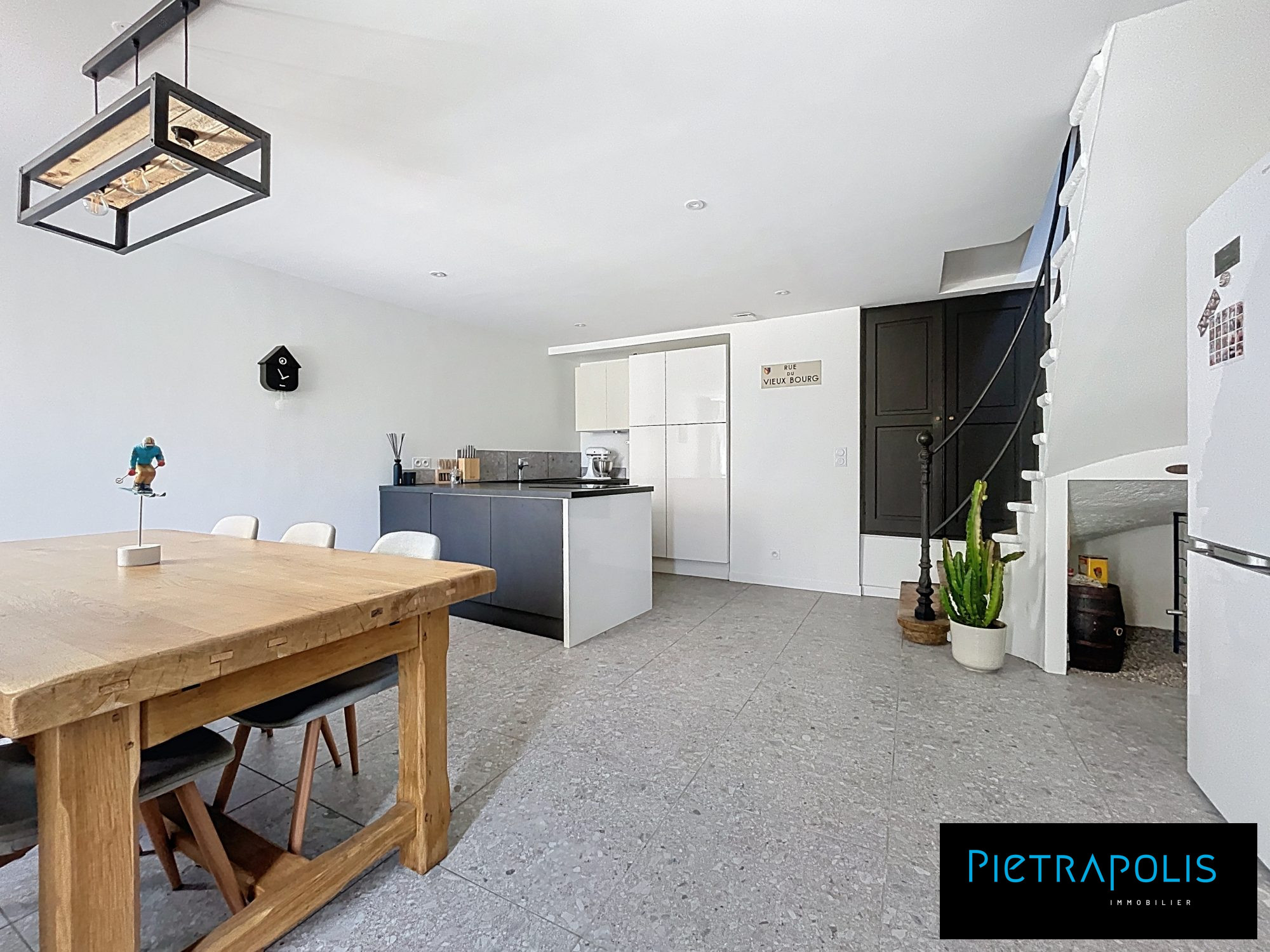 - Carrelage dans la pièce de vie, dégagement et escalier, de belle dimension 60x60,