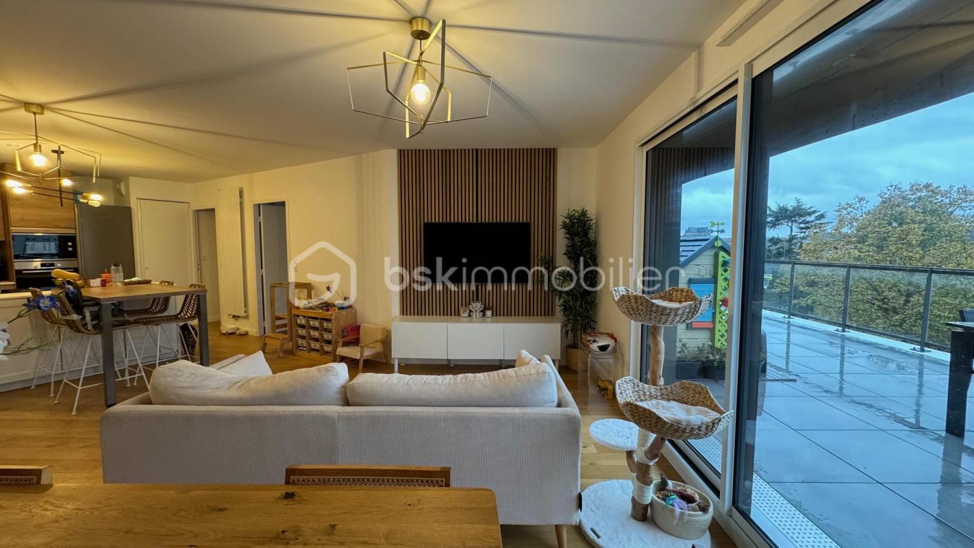 Dorothée Morel vous présente en exclusivité ce bel appartement T3 d'une surface de 80m2, situé dans la résidence haut de gamme 'Le Cipriani', édifiée en 2017 par Bati Armor, un joyau d'architecture en coeur de ville, quartier triangle d'or, à proximité immédiate des parcs du Thabor et des Prairies St Martin, commerces, médecins, écoles, transports, et axe direct St Malo. L'environnement calme et verdoyant, les parties communes somptueuses et les atouts incontestables de ce bien très rare à la vente sauront vous projeter dans un cadre de vie confortable et sans contraintes: sécurité renforcée par des caméras, badge pour tous les accès, (entrées résidence, ascenceur, du -2 au dernier étage, garages, caves, locaux vélos et poubelles), accès PMR, jardin intérieur. Situé au 4ème étage sur 6, il se compose d'une entrée avec vestiaire et wc indépendants, d'une pièce de vie de 40m2 sur parquet massif, comprenant le salon, la cuisine italienne aménagée et entièrement équipée, avec îlot central sur-mesure en acacia, la buanderie, le tout donnant sur la terrasse de 20m2 (deux baies), ombragée et orientée sud avec vue jardin, pouvant accueillir un salon complet et une table de 6 personnes, avec lumière spots et arrivée d'eau. Partie nuit, une suite avec salle d'eau et dressing, une master de 17m2 avec dressing complet et salle d'eau (transformable en salle de bains). Pour parfaire ce bien, une cave fonctionnelle et un triple garage fermé de 50m2, électrifié et borne électrique, pour stationner trois voitures + nombreux rangements; le plus grand de la copropriété! Côté technique, double-vitrage, huisseries alu teintées dans la masse, volets roulants électriques, fenêtres oscillo-battantes dans les chambres, chauffage individuel gaz (très bon DPE, entretien annuel compris dans les charges), fibre. Montant annuel des charges env.2000EUR. Ce bien vous est présenté par votre agent inscrit au rsac de St Nazaire sous le no790306229 au prix de 658000EUR + 3,3% honoraires charge acquéreur, soit 679714EUR HAI. Plus d'informations sur demande. 'Les informations sur les risques auxquels ce bien est exposé sont disponibles sur le site Géorisques:http://www.georisques.gouv.fr'. - Annonce rédigée et publiée par un Agent Mandataire -
