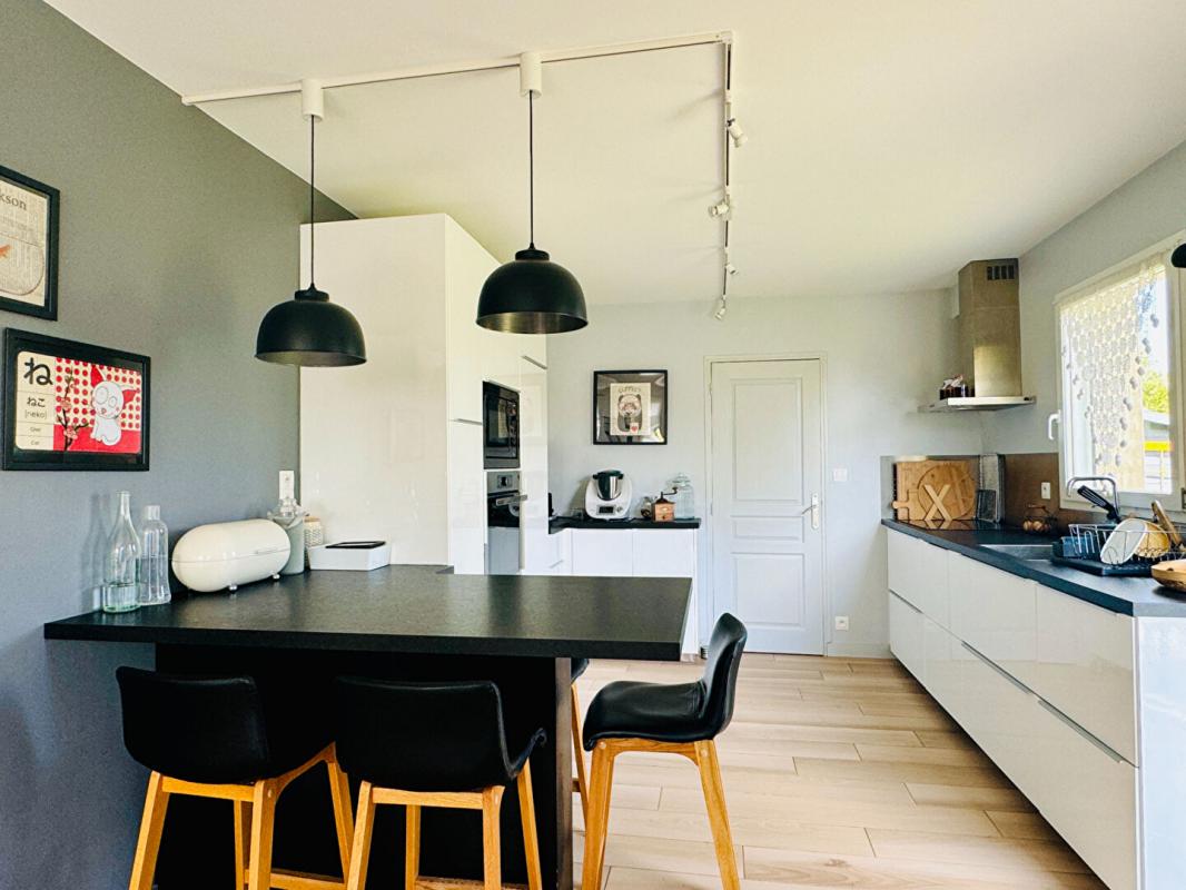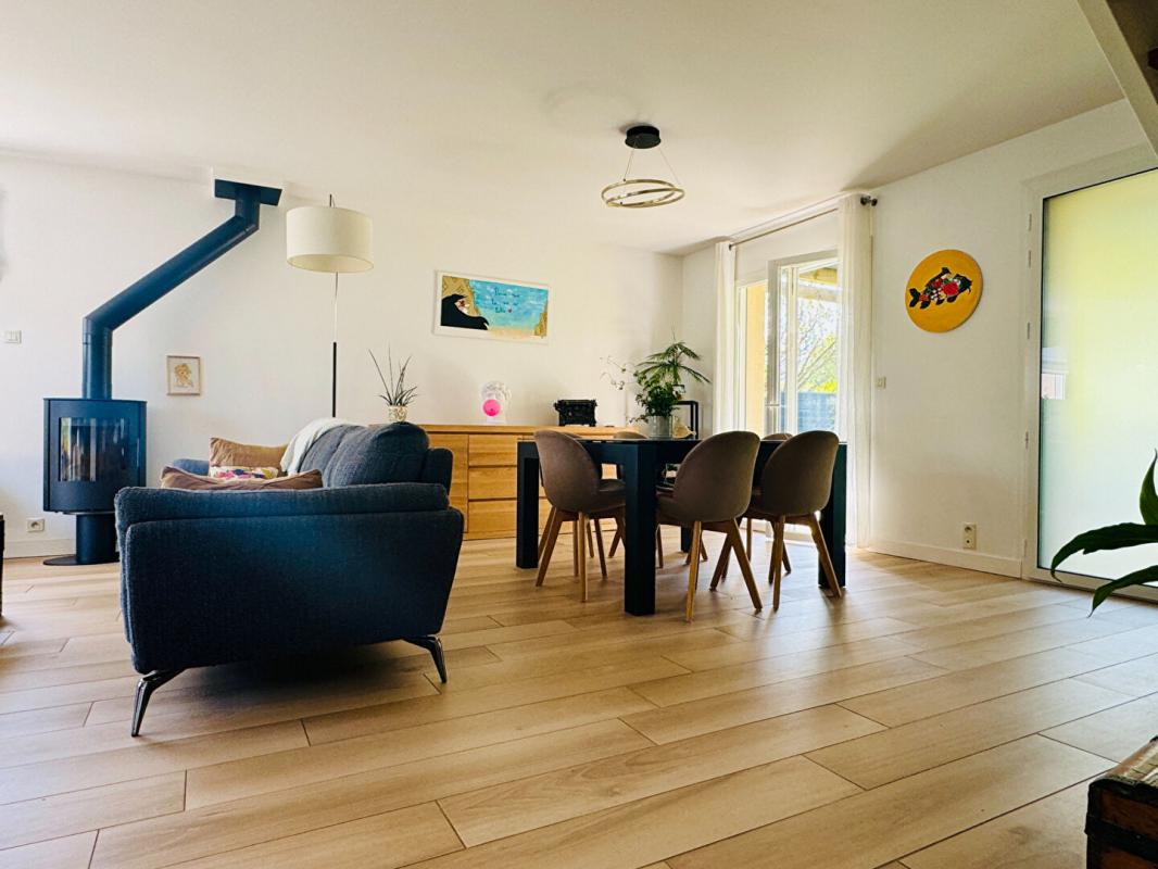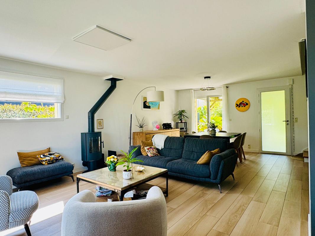 Le séjour de 54 m², exposé plein sud, bénéficie d'une luminosité exceptionnelle et d'un accès direct au jardin. La cheminée à foyer ouvert y apporte un charme indéniable. Côté nuit, le rez-de-chaussée accueille trois chambres ainsi qu'une salle de bains. A l'étage, deux très grandes chambres et une salle d'eau viennent compléter l'espace. Un bureau est également aménagé au sous-sol, idéal pour le télétravail ou une activité indépendante.