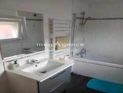 L'intérieur de la maison, construite en 1970, propose une surface habitable de 70 m² répartie sur 4 pièces, incluant 3 chambres dont une avec placards intégrés. La cuisine est aménagée et les sols sont revêtus de carrelage et de parquet. La salle de bain est équipée d'une baignoire, de lavabos et d'un chauffe-serviette. Les nombreuses menuiseries en double vitrage et les volets roulants manuels garantissent une isolation et une sécurité optimales dans cet environnement paisible d'une petite ville.
