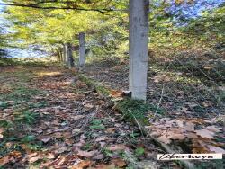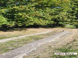 - Chemin tracé à travers la prairie et le bois menant directement au bâti
