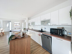Situé au premier et dernier étage de la copropriété, ce bien vous propose : une vaste pièce de vie lumineuse d'environ 43m² avec séjour, salon, cuisine aménagée et équipée.