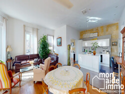- Un vaste salon-séjour d'environ 60 m² avec cuisine ouverte, baigné de lumière grâce à ses nombreuses ouvertures, offrant un accès direct à un agréable jardinet d'environ 50 m², au calme.