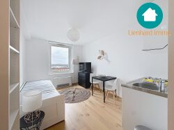 Accès par ascenseur au 9ème et dernier étage studio de 22m2 de 2020 avec belle pièce de vie lumineuse et vue dégagée. Belle pièce de vie avec parquet massif au sol, cuisine équipée d'un réfrigérateur et plaque de cuisson. 1 grande salle de bain avec douche à l'italienne, vasque et WC. Belles prestations. Taxe foncière : 580 Chauffage collectif Charges trimestrielles : 480