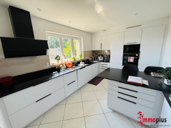 Maison de standing atypique F7 de plain-pied, 165 m2 avec une véranda de 27 m2 en exclusivité chez IMMOPLUS-ALSACE Située en lisière de forêt protégée, avec vue panoramique sur la ville, la Forêt Noire et les Vosges, dans un quartier calme en impasse. Proximité immédiate des commerces, services médicaux, transports en commun (tram, train, bus) et accès autoroutiers sans nuisances sonores. Rez-de-chaussée : - Cuisine nouvelle cuisine Schmidt (2 ans) haut de gamme - Séjour 33,84 m2 avec cheminée et climatiseur réversible -Véranda 27 m2 et climatisation réversible -Chambre parentale 14,52m2 vue sur le parc avec véranda 3,94m2 ou dressing attenante