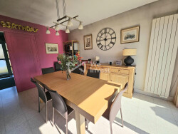 Dès votre arrivée, un hall spacieux vous accueille, menant au séjour et à la salle à manger de presque 40m², agrémenté d'un poêle à bois et de grandes baies vitrées ce qui en fait un espace à vivre très lumineux. Le séjour donne sur une terrasse plein Sud de 40m².