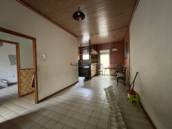 Maison de plain-pied de 51 m² avec une entrée, un salon avec coin cuisine non équipée qui ouvre sur une courette couverte et une cuisine d'été en sous-sol en contrebas, puis une chambre par laquelle on accède à la salle d'eau avec wc, et dont la fenêtre permet un accès périlleux à une terrasse de 10 m². Tout est à refaire après une période de squat. Cour à l'avant de 45 m² pour entrer un véhicule et un garage de 15 m² avec porte basculante. A saisir rapidement car rare sur le marché.