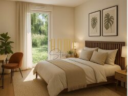 Construction neuve déjà livrée, chauffage collectif au bio gaz (30%) avec production d'eau chaude semi-instantanée, dernières normes thermiques et acoustiques (RE 2020), faibles charges, résidence intimiste, au calme et entourée de verdure. A proximité immédiate : tram, commerces, écoles, canal et pistes cyclables, accès rapide à Strasbourg et à l'A35.