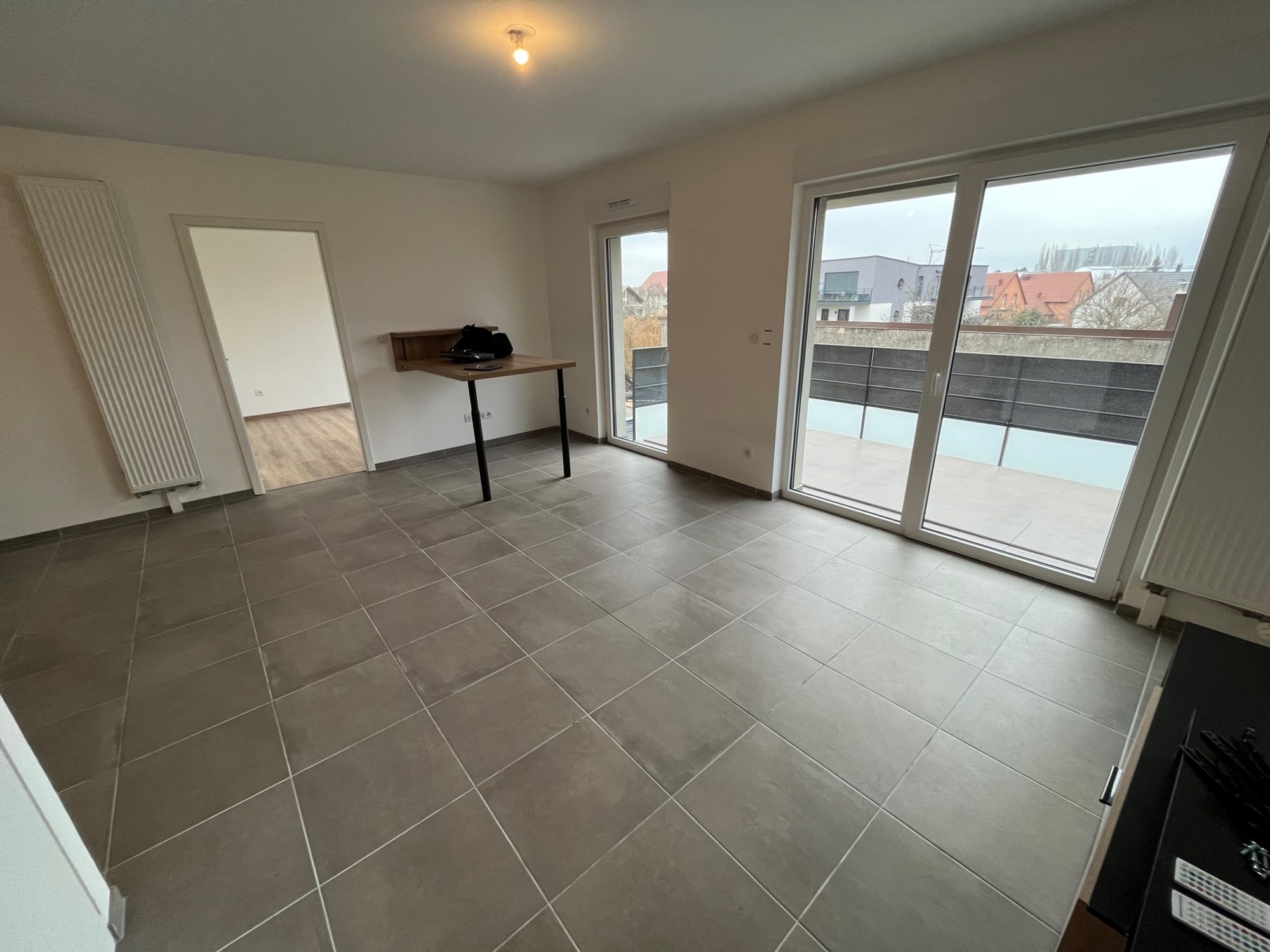 L'appartement dispose également d'une chambre, d'une salle de bains ainsi que d'une grande terrasse très bien exposée et d'un parking privatif.
