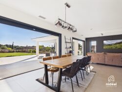 Julie RICCI ROYER peut vous présenter en exclusivité sur NÎMES, au calme et sans vis-à-vis, cette villa contemporaine d'exception sur une parcelle de plus de 3000 m². Dans un environnement privilégié, découvrez cette superbe villa contemporaine de plain-pied, offrant des prestations haut de gamme et un cadre de vie rare. Dès l'entrée, vous serez séduit par son volume, un vaste salon-séjour lumineux ouvert sur l'extérieur et pensé pour le confort et la convivialité. La propriété dispose de 4 chambres, dont 3 magnifiques suites parentales avec chacune leur salle d'eau et dressing, ainsi qu'une salle de bain indépendante. Un bureau, une buanderie et un WC indépendant complètent les espaces intérieurs.