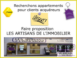 Les Artisans de l'Immobilier, agence immobilière recherche pour cliente appartements F2/F3 secteurs Longeville les Metz, le Ban St Martin, Scy Chazelles et à prox, budget entre 100 000 à 140 000 , projet d de financement validé. Si vous avez un projet de vente dans l'immédiat ou dans un un futur proche, si vous souhaitez un avis de valeur,