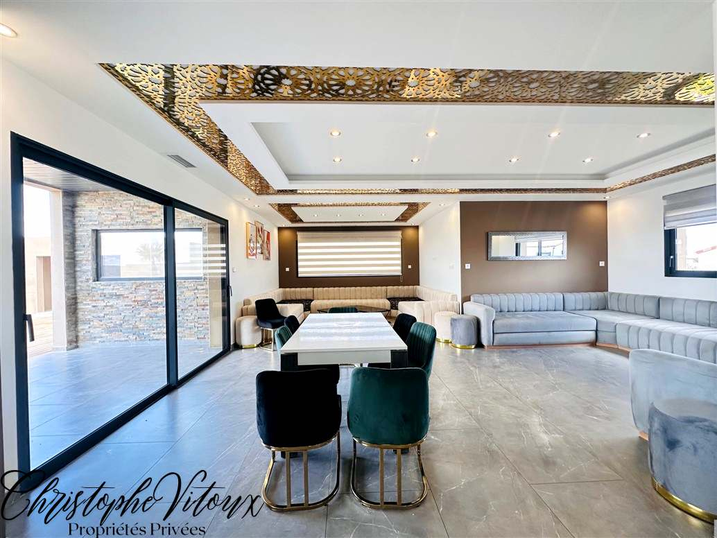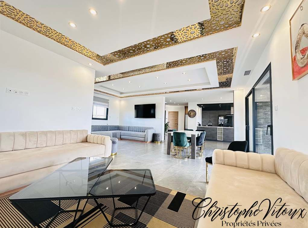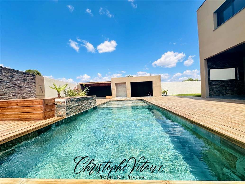 Réf :" PALMSPRINGS" Votre agence immobilière Voilà vous propose une villa à l'architecture contemporaine. Située aux portes de Carcassonne, à quelques pas du Lac de la Cavayère et des sentiers de randonnées , elle développe une surface de 205 m2 au total, le tout au coeur d'un terrain de 1015m2. Grâce à sa conception bien pensée, toutes les pièces de vie sont tournées vers l'extérieur. Cette maison neuve offre de beaux volumes composés d'un majestueux hall d'entrée totalement vitré, d'un séjour, d'une cuisine équipée ouverte , d'une salle-à-manger , sans oublier le patio intérieur qui entièrement vitré et permettant d'accéder à la grande terrasse ; rend un effet dedans / dehors exceptionnel. Le coin nuit est composé de 3 chambres dont une suite comprenant salle d'eau + baignoire et dressing aménagé ; les deux autres suites disposent chacune d'un salle d'eau et de placards de rangement. Deux toilettes et buanderie complètent le tout. Vous pourrez également profiter de deux grands garages de 40 m2 chacun avec portes motorisées, deux abris voitures en dur et une cave à vin secrète. Dans le jardin clos, une piscine de 8 x 4 au sel avec alarme confère à l'ensemble un air de vacances. Les plus : climatisation gainable individuelle, volets roulants électriques centralisés, double vitrage en aluminium, alarme individuelle, ballon thermodynamique, mitigeur de cuisine connecté pour de l'eau filtré plate ou pétillante, fibre, portail d'entrée motorisé. Possibilité de vente meublé. Village toutes commodités (supermarché, docteur, pharmacie, école..). VUE EXCEPTIONNELLE A COUPER LE SOUFFLE surplombant le village, cette villa offre un cadre de vie agréable dans un quartier recherché. Produit UNIQUE! Les informations sur les risques auxquels ce bien est exposé sont disponibles sur le site Géorisques : www.georisques.gouv.fr Le prix indiqué comprend les honoraires de négociation, ces honoraires sont à la charge exclusive du vendeur. Camille Maurette, Directrice, immatriculée au RSAC de Carcassonne sous le numéro 90464305300021 - carte professionnelle n° CPI11012021000000008.