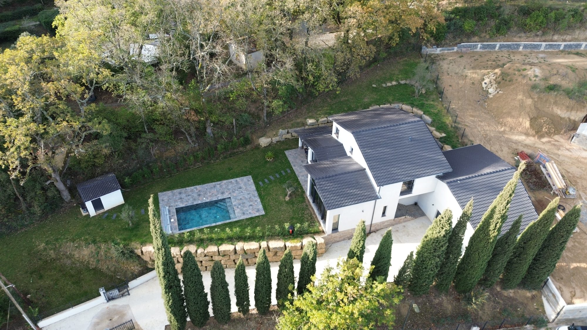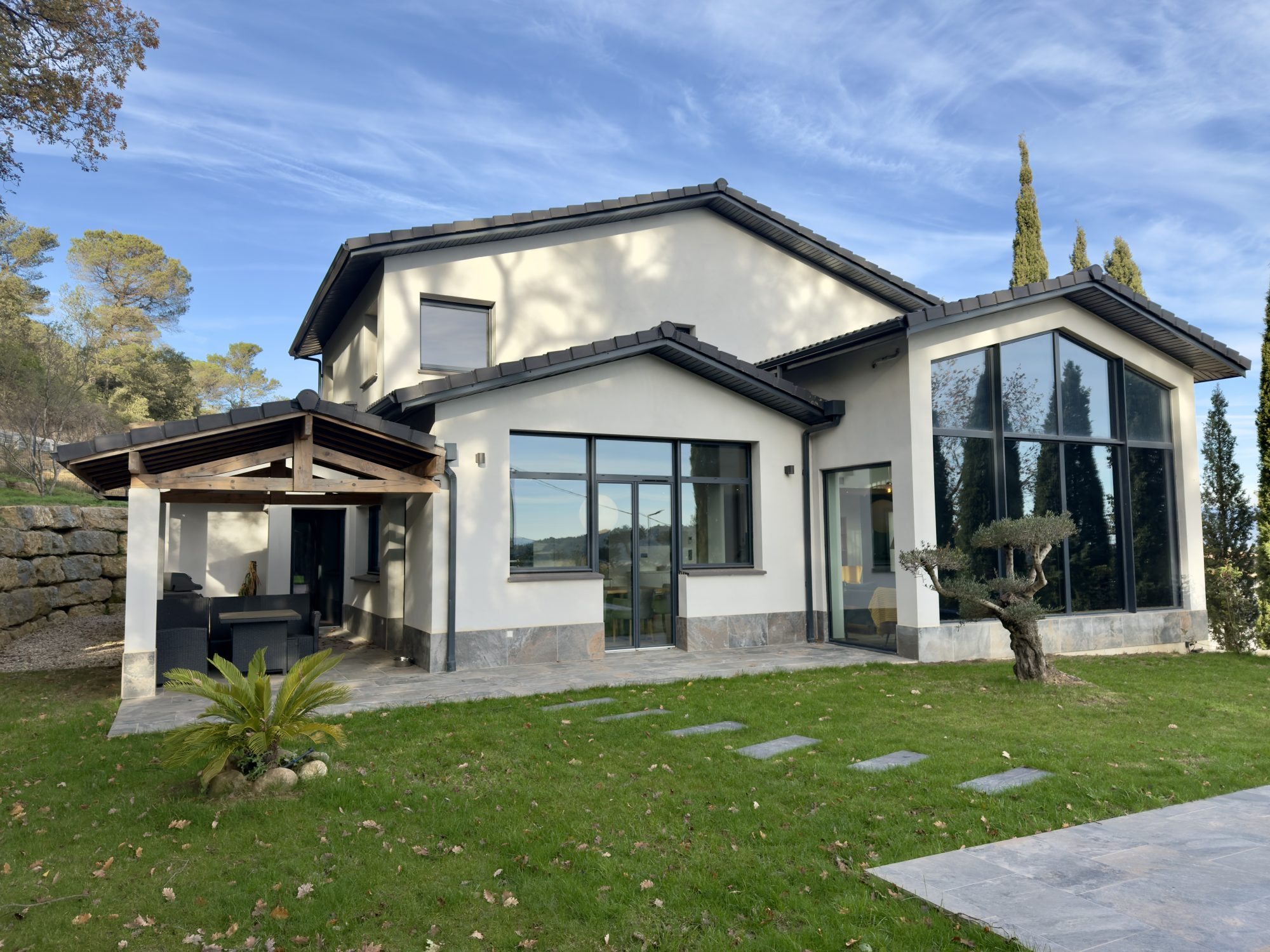 Réf :" PALMSPRINGS" Votre agence immobilière Voilà vous propose une villa à l'architecture contemporaine. Située aux portes de Carcassonne, à quelques pas du Lac de la Cavayère et des sentiers de randonnées , elle développe une surface de 205 m2 au total, le tout au coeur d'un terrain de 1015m2. Grâce à sa conception bien pensée, toutes les pièces de vie sont tournées vers l'extérieur. Cette maison neuve offre de beaux volumes composés d'un majestueux hall d'entrée totalement vitré, d'un séjour, d'une cuisine équipée ouverte , d'une salle-à-manger , sans oublier le patio intérieur qui entièrement vitré et permettant d'accéder à la grande terrasse ; rend un effet dedans / dehors exceptionnel. Le coin nuit est composé de 3 chambres dont une suite comprenant salle d'eau + baignoire et dressing aménagé ; les deux autres suites disposent chacune d'un salle d'eau et de placards de rangement. Deux toilettes et buanderie complètent le tout. Vous pourrez également profiter de deux grands garages de 40 m2 chacun avec portes motorisées, deux abris voitures en dur et une cave à vin secrète. Dans le jardin clos, une piscine de 8 x 4 au sel avec alarme confère à l'ensemble un air de vacances. Les plus : climatisation gainable individuelle, volets roulants électriques centralisés, double vitrage en aluminium, alarme individuelle, ballon thermodynamique, mitigeur de cuisine connecté pour de l'eau filtré plate ou pétillante, fibre, portail d'entrée motorisé. Possibilité de vente meublé. Village toutes commodités (supermarché, docteur, pharmacie, école..). VUE EXCEPTIONNELLE A COUPER LE SOUFFLE surplombant le village, cette villa offre un cadre de vie agréable dans un quartier recherché. Produit UNIQUE! Les informations sur les risques auxquels ce bien est exposé sont disponibles sur le site Géorisques : www.georisques.gouv.fr Le prix indiqué comprend les honoraires de négociation, ces honoraires sont à la charge exclusive du vendeur. Camille Maurette, Directrice, immatriculée au RSAC de Carcassonne sous le numéro 90464305300021 - carte professionnelle n° CPI11012021000000008.